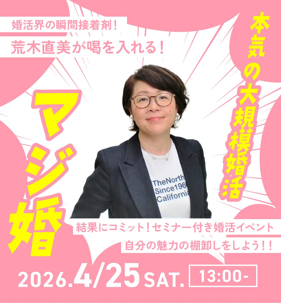 ※婚活サポートセンター会員登録(無料)がお済みでない方は、こちら より会員登録をしてからイベントにご参加ください。