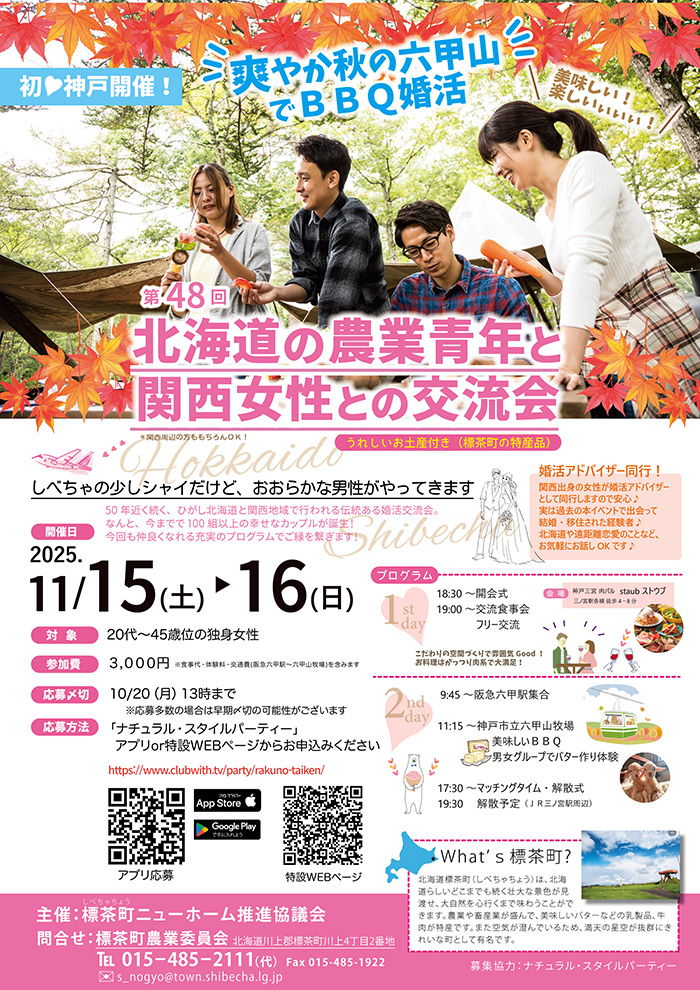 第48回北海道農業青年と関西女性との交流会 – ![]() ※こちらのイベントは「麒麟のまち婚活サポートセンター」主催ではありません。 第48回北海道農業青年と関西女性との交流会 ◎開催日 ◎開催時間 ◎開催場所 ◎参加対象者